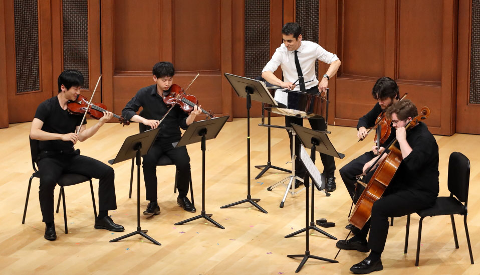 Our time as the EASQ has been the highlight of our quartet's career thus far. The opportunity to study intensely with a master quartet like the Takács and perform with artists such as Jeremy Denk and Andy Akiho has forever changed how we approach our music. Alongside the incredible artistry we absorbed, the full support of the Music Academy since our summer has been second to none, and we cannot recommend this program enough!