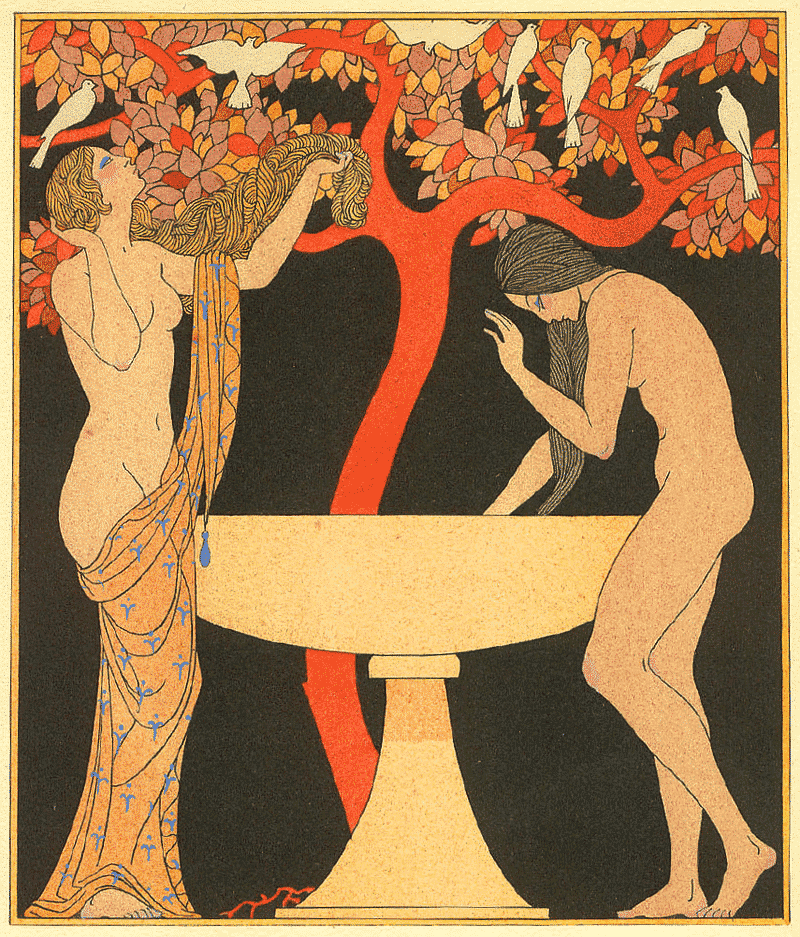 Besides demystifying the academic elite, Louÿs’ work was transgressive in its treatment of erotica and lesbianism. He writes that most literary lesbians are femme fatales, but that his Bilitis is an idyll, both normalized and revered. However earnest this intent may have been, the modern reader can’t help but wonder if Louÿs’ intensely voyeuristic tone ever strays very far from the patriarchal norms of the time. While it is clear Louÿs was catering to a heterosexual male audience, his Bilitis would serve as a muse for many lesbian writers that follow. Particularly of note is Renee Vivien, whose own translation of Sappho’s poetry does much more to subvert the male gaze, centering instead the female experience.